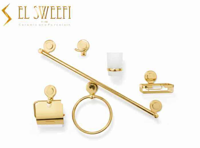 • تصميم أنيق: بتشطيب ذهبي لامع يعكس لمسة عصرية على ديكور الحمام.